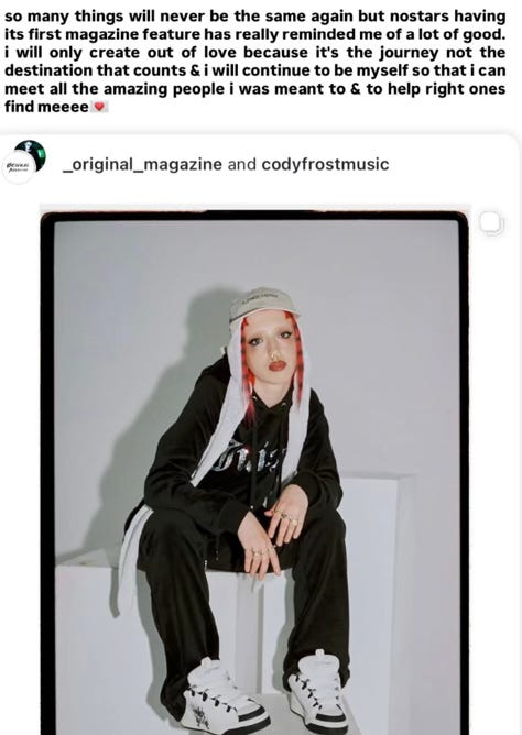 Despite it being a tough week we released our latest digi cover featuring the awesome Musician Cody Frost. They were such a breath of fresh air to work with and listening to their experiences and views on the industry and much more was so authentic and real. If you have not checked out the interview feature, check it out now!